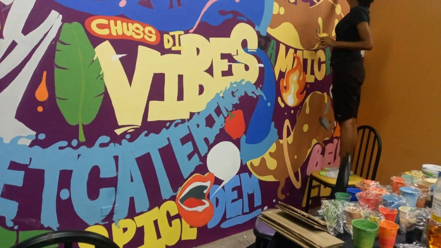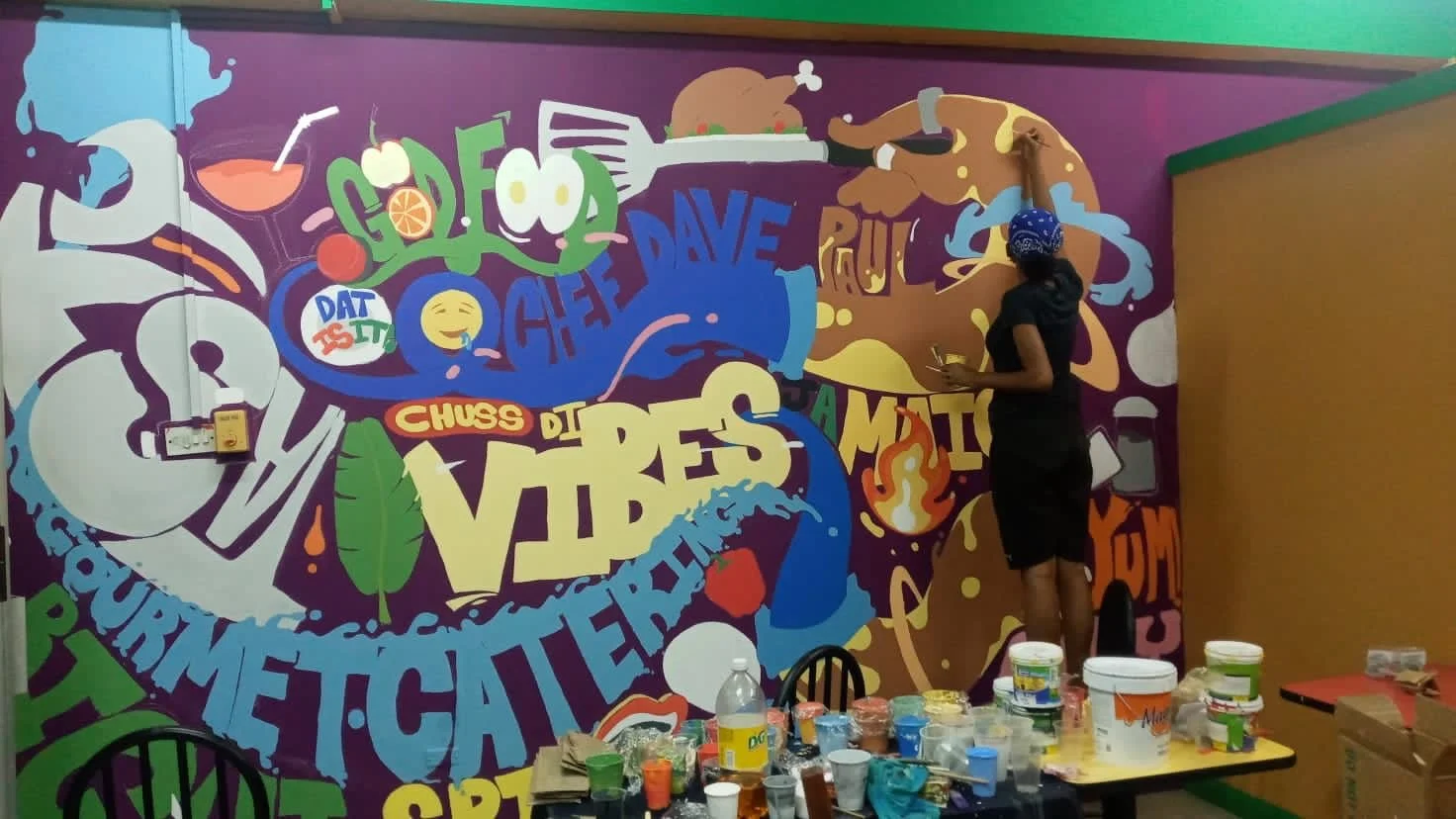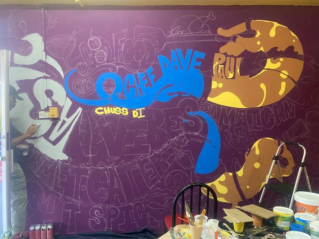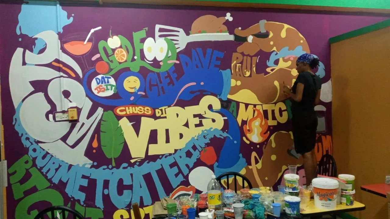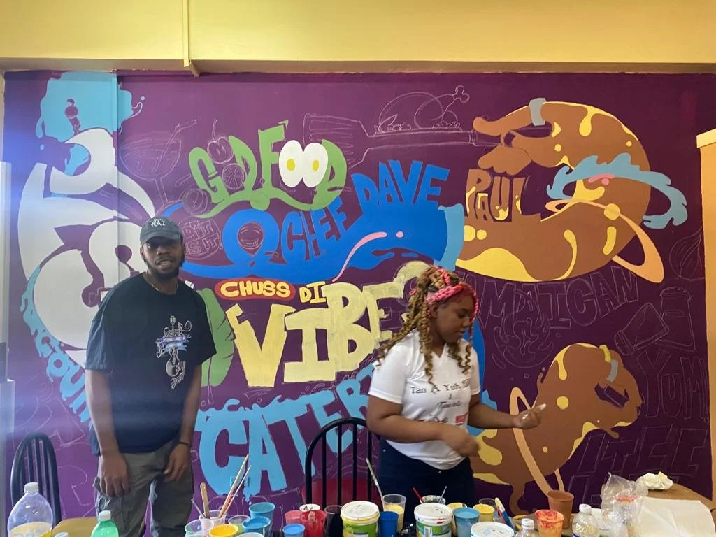 Hand-painted in vibrant colors with the team — Shantel Mason, Jason Cunningham, Rochelle Lola, and myself — this mural for Chef Dave Paul’s Kingston restaurant brings flavor to the walls just like his food brings flavor to the table.