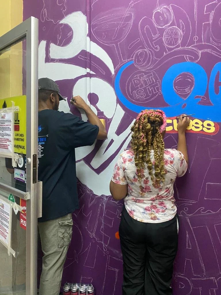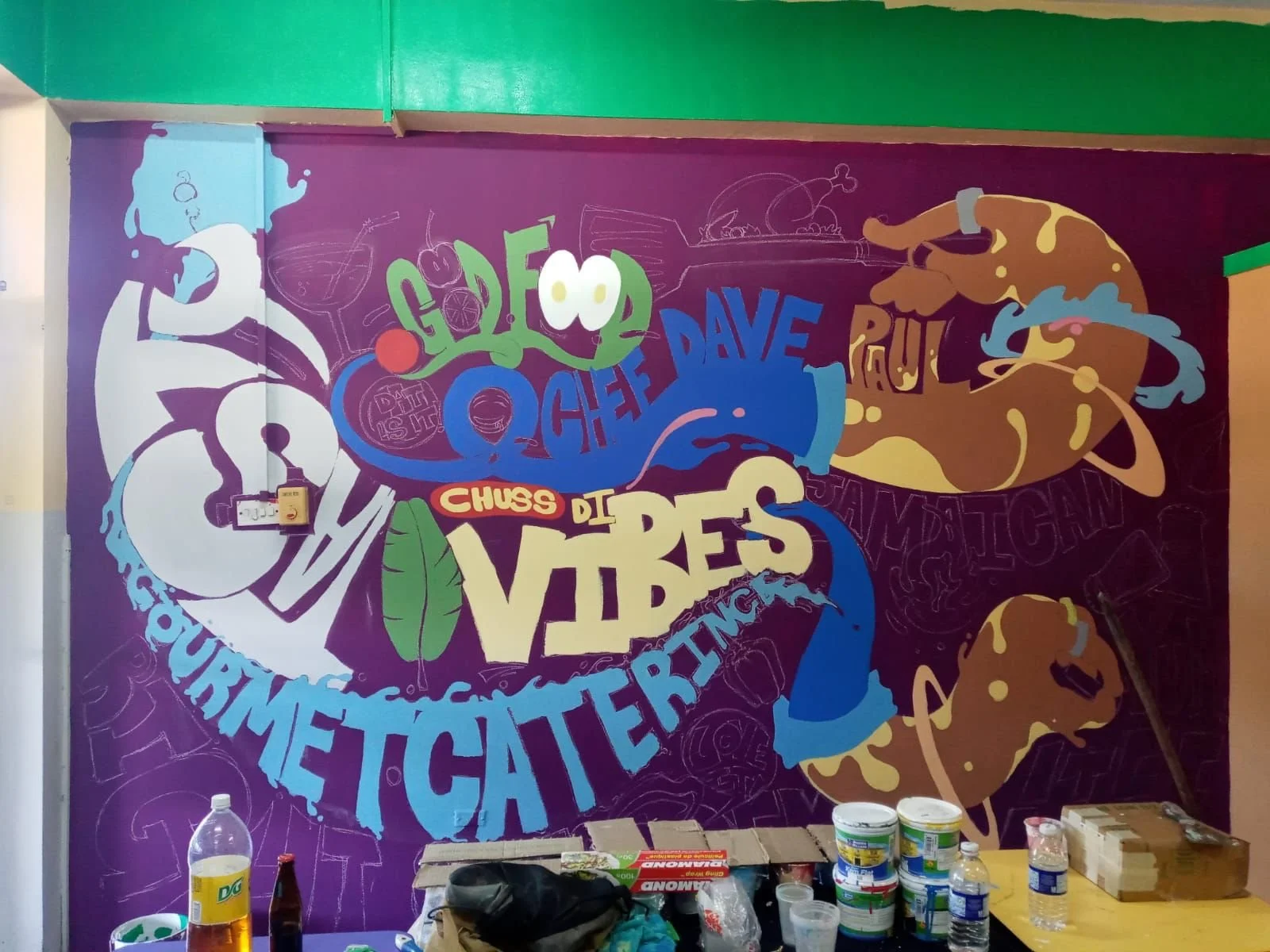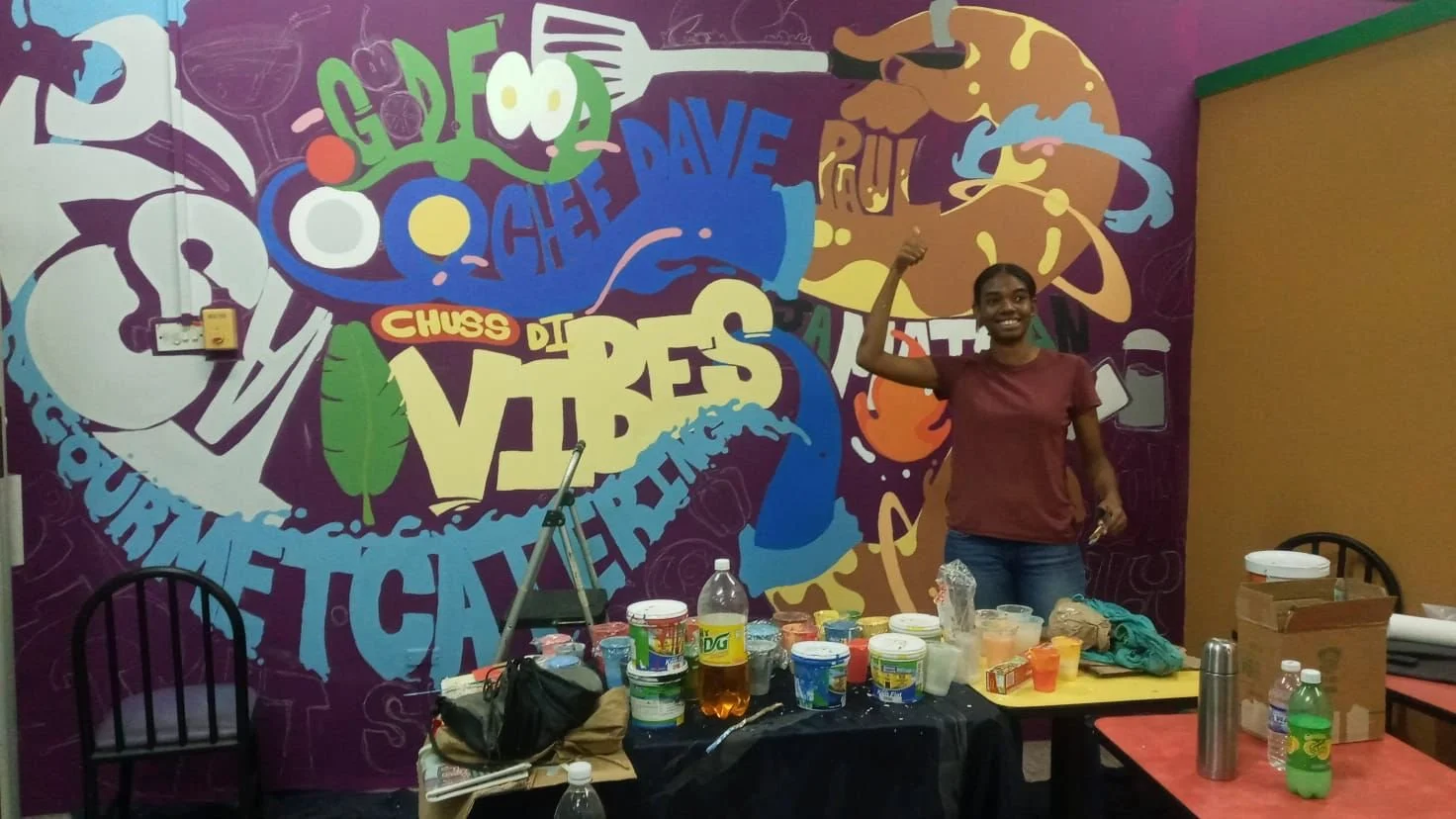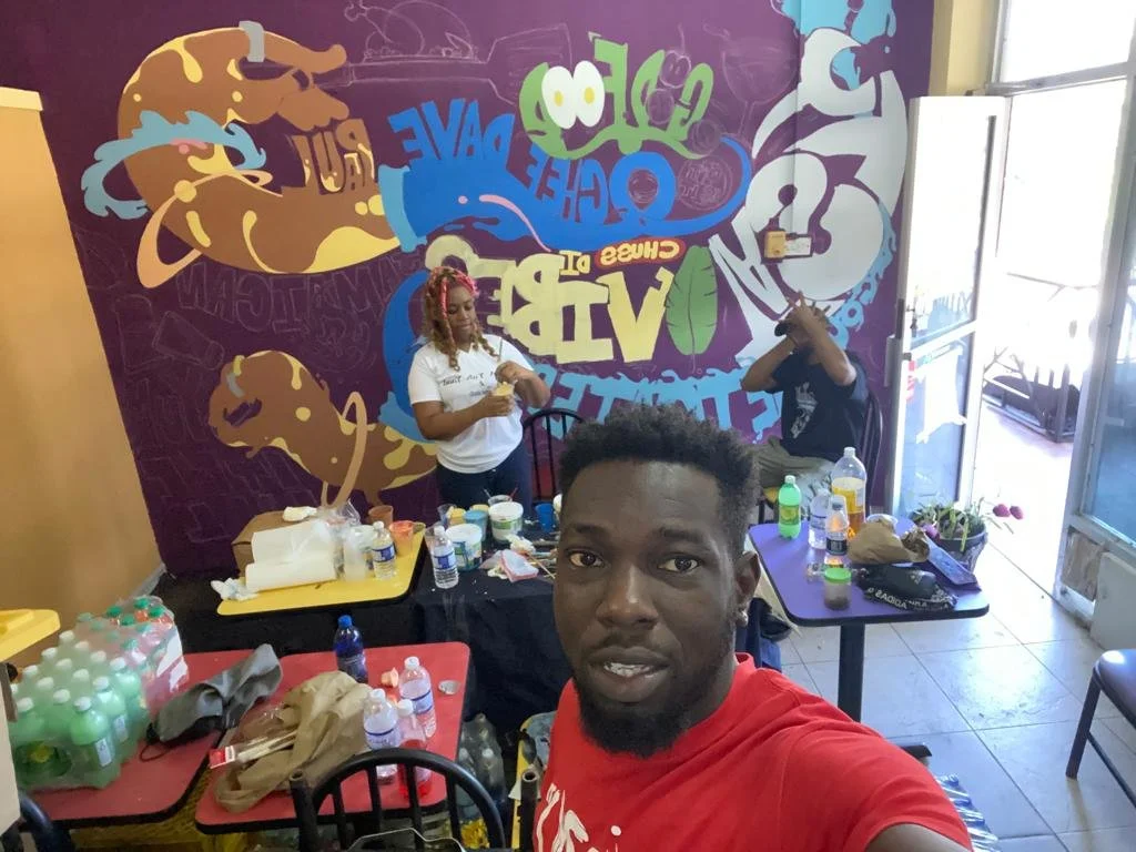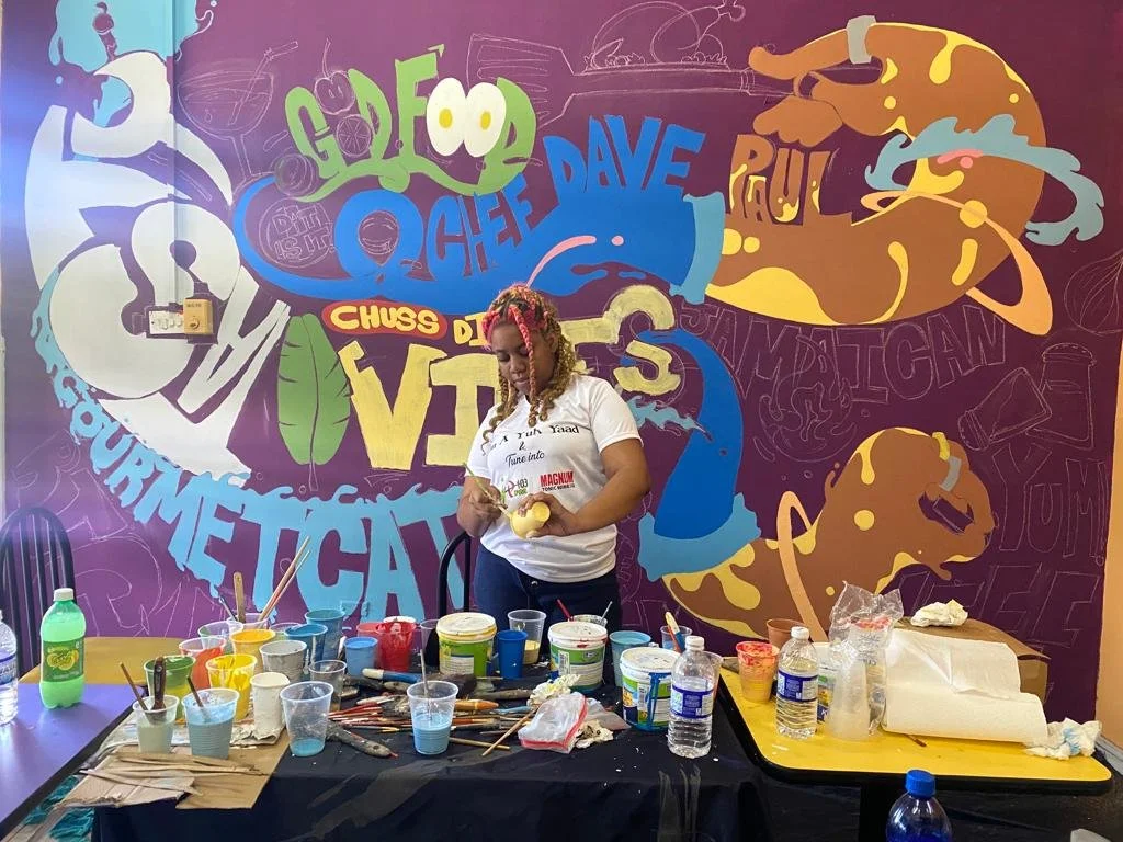 Hand-painted in vibrant colors with the team — Shantel Mason, Jason Cunningham, Rochelle Lola, and myself — this mural for Chef Dave Paul’s Kingston restaurant brings flavor to the walls just like his food brings flavor to the table.
